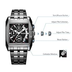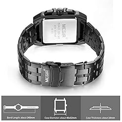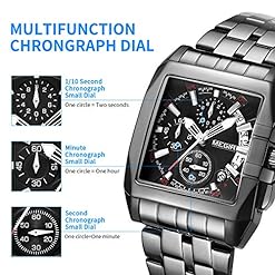 Fashion Watch for Men: Quartz movement, accurate time keeping. Hardlex wear-resistant crystal and stainless steel band with a bracelet clasp, alloy case, rectangular face design.