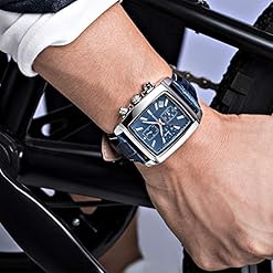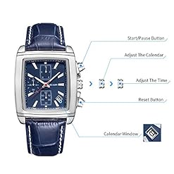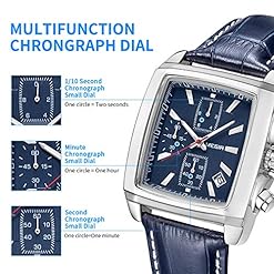MEGIR Men’s Business Analog Chronograph Luminous Rectangle Quartz Watch with Stylish Leather Strap for Sport & Work