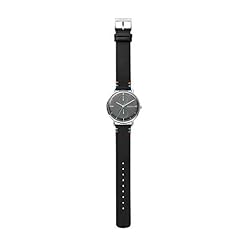 This 36mm Horizont features a gray sunray dial, multifunction movement and black leather strap accented with color pop of whipstiching.