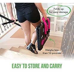 DO GYM EXERCISES ATTACHED TO RESISTANCE & BURN MORE CALORIES: Easily attach the cloth covered resistance bands to the fold up platform and then either the handles, the collapsable workout bar or the wrist/ankle straps and perform 300+ exercises that you can make easier or harder. The Fold Up Platform allows you to increase or decrease the exercise difficulty based on shortening or lengthening the bands. You can make your exercises even harder by adding more than 1 band on either side of you.
