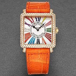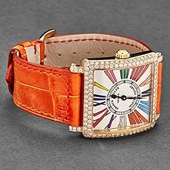 Franck Muller Women’s 6002LQZCDDR5NOR ‘Master Square’ Silver Dial Orange Strap 18K Rose Gold Diamond Watch