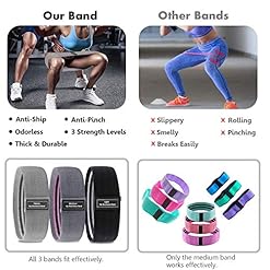 The materials of this fabric resistance bands are extremely durable and high quality,soft and stretchy cotton and latex inside that feels soft to the touch,will not slide around,pinch your skin or roll up during workouts,unlike rubber exercise bands.You could complete routine without having to constantly pause workout and adjust your exercise bands.