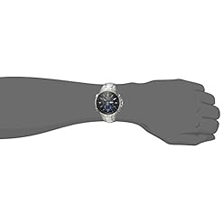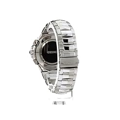 Seiko Couture Radio Sync Solar Chronograph. This bold men’s watch is designed with a stainless steel case and bracelet and a cabochon crown. The bold black dial features lumibrite hands and markers, a date calendar and three sub dials with blue highlights. The grey bezel includes a world time function featuring 25 time zones. Radio-controlled, Radio Sync Solar Chronograph automatically receives radio signals to precisely adjust the time and calendar signal reception and result indicator. The chronograph measures up to 60 minutes in 1/5 second increments with a split time measurement function and a date calendar. Powered by any light energy, its Solar Cell is energy-efficient with a 6-month power reserve once fully charged. No battery change is required. 100M Water Resistant