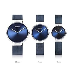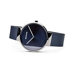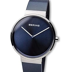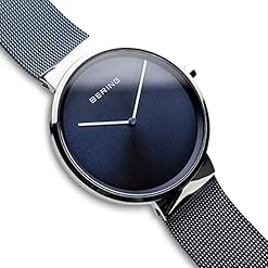 The BERING watch has a highly scratch-resistant and flat sapphire crystal covering the blue sunray dial