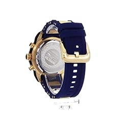 Blue Dial with Gold Tone and White Hands and Hour Markers; Luminous; 18k Gold Ion-Plated Stainless Steel Case; Blue Polyurethane Strap with 18k Gold Ion-Plated Stainless Steel Accents