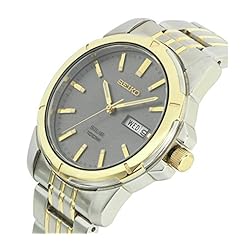 From the master craftsmen at Seiko, the Seiko Men’s SNE098 Two Tone Stainless Steel Analog with Grey Dial Watch is a cutting-edge timepiece with a masculine appeal. Featuring a black analog dial and a two-tone stainless steel band, this watch is packed with style and would be a great addition to your watch collection.