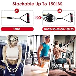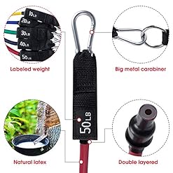 5 Color Tube Bands:Such tube resistance band with 5 different color and resistance level, all exercise bands are 48″ in length, they are double layered and carefully constructed and can be used alone or stacked in any combination to a maximum equivalent of 150 lbs. Made of extra strong cord which is extremely durable and protective. And each tube band is color-coded for instant recognize ability, but we still label each one with the equivalent weight for your convenience.
