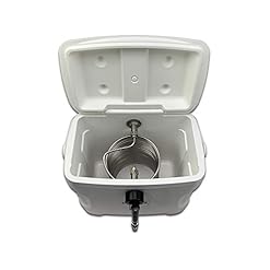 Quality meets portability with our 1 tap 30 quart jockey box. Also known around our warehouse as ‘the tailgater. ‘ You’ll be the hit of the party when everyone is pouring their own beer from a tap. It’s easy to hook up, pours ice cold beer, and easy to clean. Bring it anywhere draft beer is required (parties, camping, football games, etc. ) and all night long people will be asking you, ‘where did you get that thing?’ Rear Inputs: The beverage line coming from your keg connects to this jockey box on the back of the cooler. This leaves a clean look on the pouring side (faucet). Benefits: All stainless steel construction Deep direct coil to shank assembly to prevent blowouts. 50′ x 5/16″ SS coil holds over a pint of beer Designed by industry professionals Every jockey box is hand built in Michigan by COLDBREAK and backed by our Includes: 50′ Stainless steel coil Stainless steel shanks Stainless steel faucet with black tap handle Dimensions: 18L x 12W x 17H