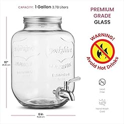 PREMIUM GLASS – Constructed of premium-grade, ultra durable glass, the dispenser will be secure and balanced for indoor and outdoor use. The crystal-clear walls grant you the grand view of the goodness inside, and the wide mouth authentic mason jar design adds a majestic touch to any setting.