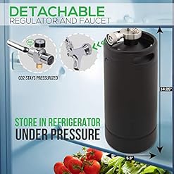 Features: Compact & portable mini keg system dimple new shape kegs homebrew CO2 system keeps carbonated beverages fresh all day Includes all necessary installation components & hardware Solid stainless steel with hexagonal screw cap construction keep beverage colder, longer premium powder coating perfectly fit into refrigerator easy to assemble – easy to fill – Easy to clean