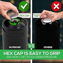 NO SCRATCH POWDER COATED STAINLESS STEEL: NutriChef home brewing growler keg 128 oz set has food-grade 304 stainless steel keg barrel & cap spear, aluminum regulator, brass tap, black matte powder coating. Includes silicone O-ring kit & 47.24″ tubing