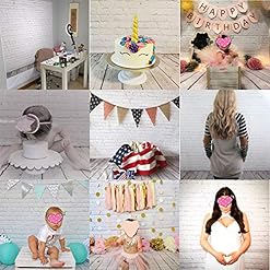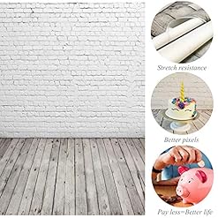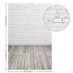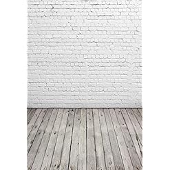 HUAYI 5X7ft White Brick Wall With Gray Wooden Floor Photography Vinyl Backdrop D-2504