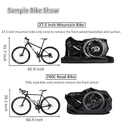 Bike carry bag — This folding bike bag is suitable for regular 26 inch bikes,even up to 27.5 inch bikes with wheels and handlebar off. So portable to carry.
