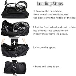 Easy to load in — Disassemble the front wheel and handlebar of the bike,then put the whole bicycle into the bag and zip up.