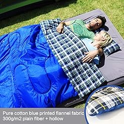 ✔【COMFORTABLE DOUBLE SLEEPING BAG】: Crafted with water-resistant and rip-stop polyester shell, pure cotton blue printed flannel fabric and hollow fiber filling for soft, warm, comfort. HORING sleeping bags are designed to ensure you have a good and relaxing night’s sleep after a tiring day of trekking, hiking, or travel. Double S-shaped quilted design and high-quality precisely done stitching enhances the durability