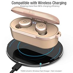 Charge on-the-go-TOZO T10 wireless earbuds can last for over 4 hours’ playtime from a single charge and 14 extra hours in the compact charging case. Charging case support wireless charging. Providing convenient charging way with no strings attached.