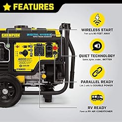 Champion Power Equipment 100573 4000-Watt DH Series Open Frame Inverter, Wireless Remote Start, 4000-Watt + Gas + Remote…