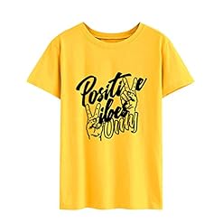 Nlife Women Positive Vibes Letter Victory Sign Short Sleeve Casual Tee Shirts