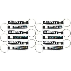 This wholesale pack of 1 dozen hockey keychains by Inkstone contains an assortment of keyholders that are inscribed with motivational slogans. These inspirational quote key chains are designed to provide you with an instant gift solution, when you need bulk hockey gifts for a group of people of all ages. They are conveniently packaged in a bulk pack to make easy hockey giveaways and party favors for guests. Easily place them into goodie bags as favor items; hockey fans and hockey lovers will thank you for these practical and meaningful hockey souvenirs that they will actually want to use and keep! These universal, unisex key chains will fit a diverse crowd, from kids to tween youth and teen boys and girls, to adult men and women. Included in this economical bulk pack of key tags are 4 pieces each of the following motivational messages: Believe that You Can, Winners Never Quit, and Challenge the Impossible. These versatile keychains are made from soft silicone rubber, and can be used as luggage tag markers and backpack accessories. They won’t add unnecessary weight to your pockets or your bags, and yet they will hold a large number of keys and keychain attachments. Each of these hockey keyholders features a large flat metal keyring, and a silicone rubber loop that will make it easy to locate and hold your keys. Not only are these keychains incredibly useful, but the meaningful inscribed messages provide a source of daily inspiration, motivation and encouragement. That’s why they make such great achievement gifts and awards for hockey players and athletes!
