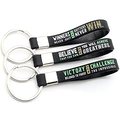 This variety pack of 1 dozen key chains includes 3 different designs (4 pieces of each design): Believe that You Can, Winners Never Quit, and Challenge the Impossible.