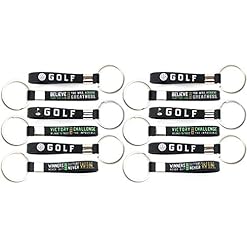This wholesale pack of 1 dozen golf keychains by Inkstone contains an assortment of keyholders that are inscribed with motivational slogans. These inspirational quote key chains are designed to provide you with an instant gift solution, when you need bulk golf gifts for a group of people of all ages. They are conveniently packaged in a bulk pack to make easy golf theme giveaways and party favors for guests. Easily place them into goodie bags as favor items; golf fans and golf lovers will thank you for these practical and meaningful golf souvenirs that they will actually want to use and keep! These universal, unisex key chains will fit a diverse crowd, from kids to tween youth and teen boys and girls, to adult men and women. Included in this economical bulk pack of key tags are 4 pieces each of the following motivational messages: Believe that You Can, Winners Never Quit, and Challenge the Impossible. These versatile keychains are made from soft silicone rubber, and can be used as luggage tag markers and backpack accessories. They won’t add unnecessary weight to your pockets or your bags, and yet they will hold a large number of keys and keychain attachments. Each of these golf keyholders features a large flat metal keyring, and a silicone rubber loop that will make it easy to locate and hold your keys. Not only are these key rings incredibly useful, but the meaningful inscribed messages provide a source of daily inspiration, motivation and encouragement. That’s why they make such great achievement gifts and awards for golfers and athletes!