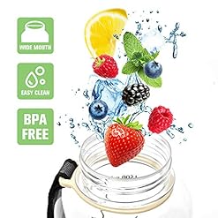 BPA FREE WATER BOTTLE EASY CLEANING: The plastic bottles are made of the high quality Tritan Resin that durable, BPA-free, odor-free and shatterproof to withstand accidental drop. Water jug with wide mouth is easy to add ice, fruit or clean with brush. clear water bottle make the little corners visible. The gym water bottle has dust cover to keep it clean and great for outdoor as travel water bottle. We are confident with our premium straw water bottle and offer 30 days money-back guarantee