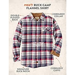 PERFECT WEIGHT: Weighing in at 5.1 ounces, the Buck Camp Flannel Shirt is the perfect weight to be worn alone or layered, indoors or outside; you’re gonna love this comfortable brushed cotton flannel shirt