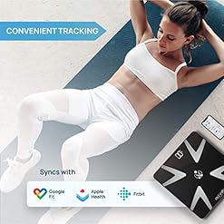 ENJOY TRACKING YOUR FITNESS JOURNEY: This smart body composition scale tracks 8 key fitness metrics, including Body Weight, Body Fat Percentage, Water, Muscle Mass, BMI, BMR, Bone Mass and even Visceral Fat directly on your smartphone.