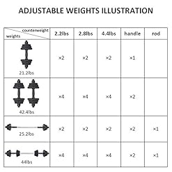 ADJUSTABLE WEIGHTS, SOLID STEEL MATERIAL MADE: With dumbbells available in smaller size, totally up to 44lbs, you’re free to customize the weight setting to meet the training needs. Made of durable steel mixed substance and TPU material, the fitness dumbbells kit provides you with various weight options, ranging from 21.2lbs to 44lbs