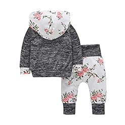 ❤Baby girls hoodie clothes sets, long sleeve baby hooded outfit with kangaroo pocket, Flower printed full length pants with drawstring elastic waistline
