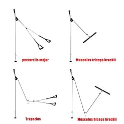 【Multiple combinations】By changing the connection between the gourd buckle and high-strength steel cable, you can get Multiple functional exercise methods: pull-down /lift/Horizontal stretch etc. The detachable handle gives you the freedom to change the accessories you need (including a ruler and two sports handles with foot straps). It allows you to train biceps, triceps, shoulders and back. For example, biceps curl, triceps pull down, latitude pull down, line, fly.