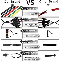 -Raw Material and Safety:Latex Free tube which is more strong,skin-friendly,safe,durable and up to all your demands and reinforced lock with double layers is more safe and reliable,then it is a more strong training resistance band.