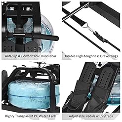 [Durable and High Quality] – Rowing machine is made by steel and the water case made by double layer makrolon, the exercise equipment has been tested for durability; its resistance mechanism has been proven to withstand over one hundred thousand counts of usage and over 440 lbs of user weight.