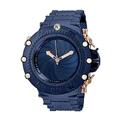 Blue and Rose Gold dial enhanced by luminous rose gold-tone hands. Dark Blue-plated stainless steel case with a dark blue-plated stainless steel band. Quartz movement. 200 meters / 660 feet water resistance. Uni-directional Rotating bezel. Flame Fusion crystal. Solid caseback. Fold Over clasp. Screw Down crown. Case size 52 mm x 18.6 mm. Band 27.3 mm x 9 incheslong. Invicta 32953 Subaqua Watch.