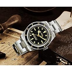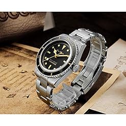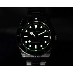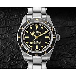 Model: SN004-G Movement: NH35 [automatic mechanical movement] Case: Material – 316L Stainless Steel 38 mm in diameter Length 46 mm Thickness 13mm Band width 20 mm Glass: Sapphire Crystal Glass, Swiss AR Coating Bezel: 120 Clicks Unidirectional Chronograph Bezel,Ceramic Top Ring, 12 O’clock Luminous Markers Dial Color: Matte Black Color + Printed 3D Time Scale Hands: DLC Gold Hands, Luminous Coating Luminous: Retro Luminous Effect SLN C3 Green Light, Hands and Markers Crown: Screw-down Crown, With 3D Shark Logo Case Back: Screw-down Case Back, Brushed Process Strap: 316L Solid Stainless Steel Bracelet, Clasp: Folding Clasp With Safety,With San Martin Hexagon Logo Water Resistant: 20Bar=200 meters Weight: about 140g