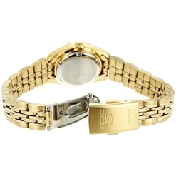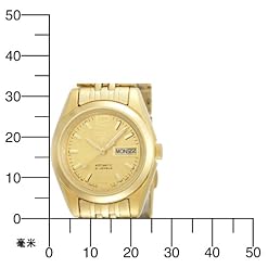 Gold-tone dial enhanced by gold-tone index-style shape hands. Gold-tone stainless steel case with a gold-tone stainless steel band. Automatic movement. 50 meters / 165 feet water resistance. Fixed bezel. Scratch Resistant Hardlex crystal. Solid caseback. Fold Over with Safety Release clasp. Pull / Push crown. Case size 25 mm x 10 mm. Seiko SYMA60J1 Seiko 5 Watch.