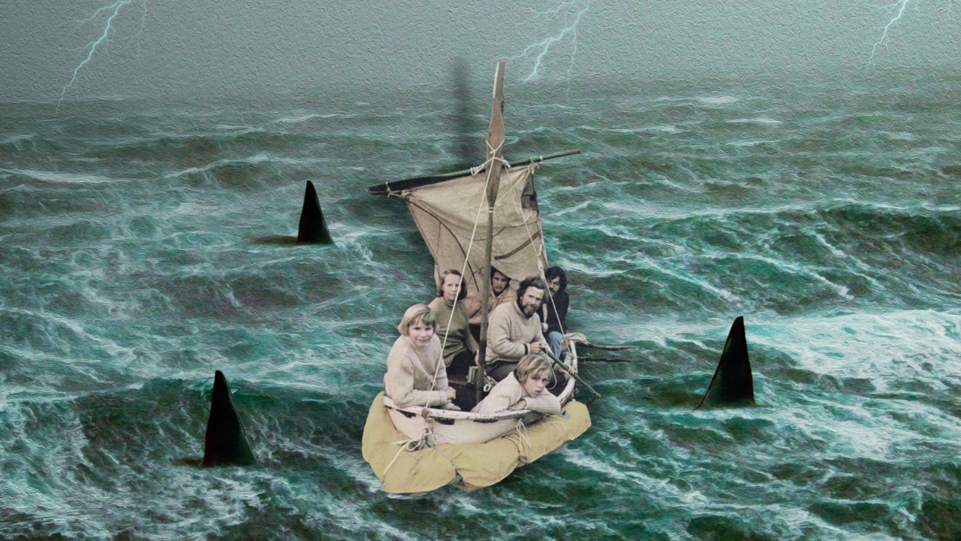 Outside is known for covering survival stories, from the 1996 Everest disaster that inspired Into Thin Air to the original story behind The Perfect Storm. These real-life tales often center on heroic individual feats, or a team, or group of friends, that band together to make it through. What makes Apple’s new podcast Adrift unique is that it tells the extraordinary story of a family who survived against all odds at sea for 38 days after being shipwrecked. A dream voyage of sailing around the world turned into a harrowing disaster when three orca whales hit their 43-foot wooden schooner and sank it within minutes. Stranded in the vast Pacific Ocean, 200 miles west of the Galapagos Islands, the Robertsons had no radio nor compass, and battled heavy storms and sharks circling. All they had left after their sailboat sank was an old inflatable rubber life raft, a nine-foot fiberglass dinghy, a few tins of food, and each other.