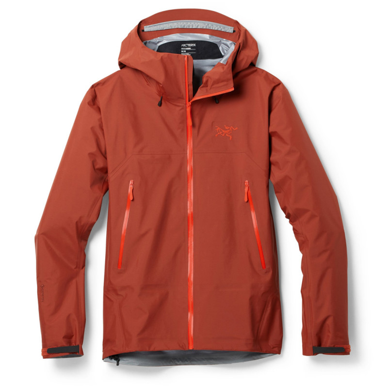 The Arc’teryx Beta SL features a super hardy 3L construction for robust waterproofing and durability. It’s made with a Gore-Tex ePE waterproof membrane to block rain, sleet, and snow, and it’s laminated to a bio-based nylon face fabric with a DWR finish to repel raindrops and moisture. On the inside, the Beta is lined with Gore-Tex C-Knit, which gives it a comfortable feel and boosts its breathability, too. This jacket is designed to keep you comfortable during high-intensity activities: The sleeves are built for good mobility, and pit zips allow you to dump excess heat when you’re really hustling. Plus, it has lots of handy storage. Two zippered hand pockets and an internal chest pocket keep a lockdown hold on your valuables. And if you’re going off the grid, this jacket even includes an extra safety feature: A built-in RECCO reflector can help rescuers find you in an emergency.