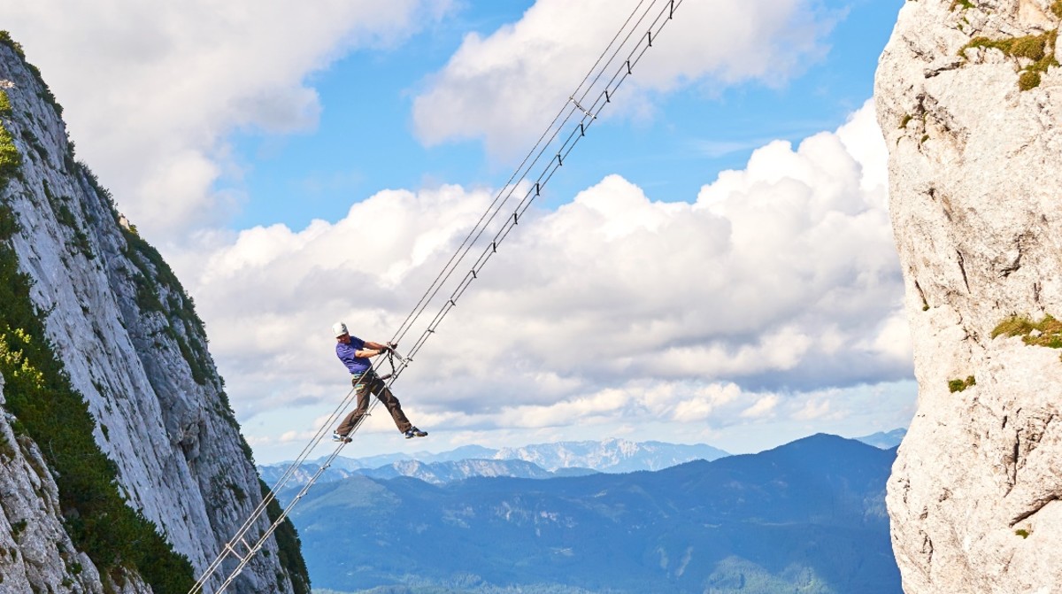 The Dachstein Salzkammergut tourism website notes that the Via-Ferrata can only be climbed in good weather conditions and should only be attempted by experienced climbers.