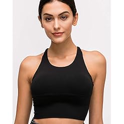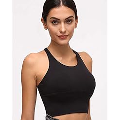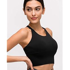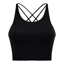 Yxiuexur Women’s Sports Bra Medium Support Strappy Back Cropped Tank Tops Padded Workout Yoga Longline Bra