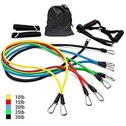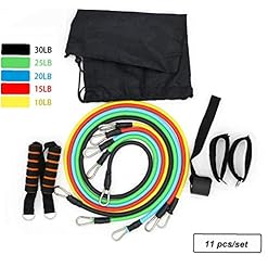 Including 5*pcs elastic bands: Black(30 lbs), Blue(25 lbs), Red(20 lbs), Green(15 lbs), Yellow(10 lbs). 2*pcs handles, 1 *pcs door anchor, 1*pc character ,2*pcs ankle straps *pc Carry Bag.