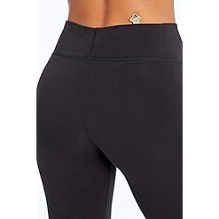 Mid rise bootleg legging with a shaped waistband that includes a power mesh lining. The lining provides coverage, tummy control and a slimming compression.