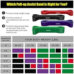 4 Variety Pull-Up Bands: heavy duty assist bands with different colors and resistance levels ( Red: 15-35lb, Black: 25-65lb, Purple: 35-85lb, Green: 50-125lb ), you can select the right levels based on your specific needs and fitness goals, enhance your strength quickly.