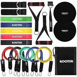 Kootek 18 Pack Resistance Bands Set Workout Bands – 5 Stackable Exercise Bands 5 Loop Resistance Bands 2 Core Sliders…
