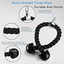 【Premium Material】Our high quality steel pulley can be 360° rotated and ensures that no additional noise is generated during operation.Make up of black nylon with durable rubber stoppers on both ends,our tricep rope will be more durable sturdy than others.