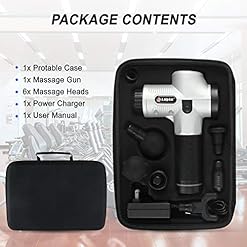 【RATIONAL DESIGN】 Handheld massager only weighs 1 kilogram(2.2lbs), the ergonomic designed grip minimizes external vibrations and the durable anti-slip silicone grip makes the massager easier and comfortable to hold for your enjoyment.The potable case makes it convenient to carry the massage gun to the gym, office, and home, You can enjoy a deep tissue massage any time anywhere.
