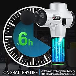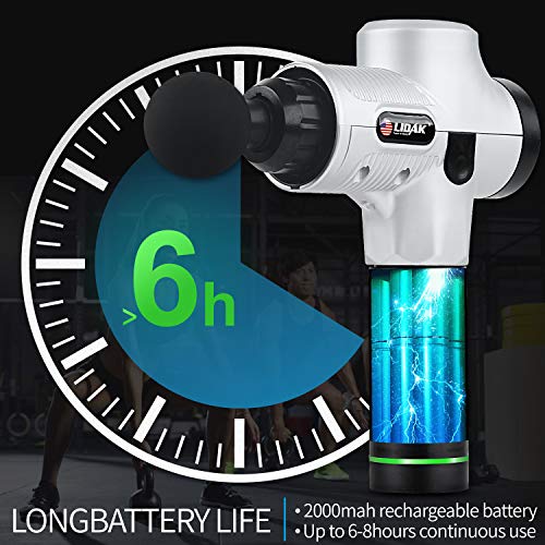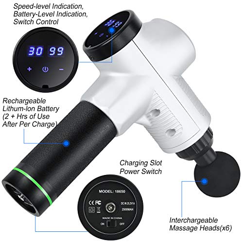 【LONG WORKING TIME】The cordless massager is equipped with 2500mAh high-quality lithium battery, so it can keep working about 6 hours after per fully charged. The body massager has an LCD battery indicator so you don’t have to worry about power outages.