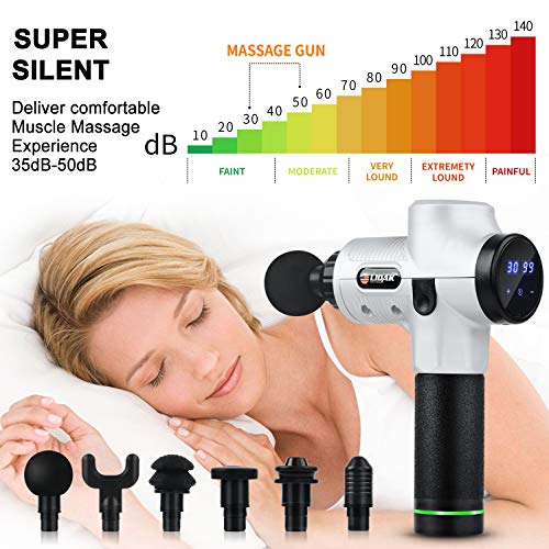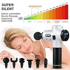 【POWERFUL BUT QUIET】 The Professional Massage Gun is built with brushless high-torque motor and newest noise reduction technology , which ensure the strength of the massager , also the high-precision mould makes the machine head and the body tightly connected, the noise in the process of running can be effectively reduced by smooth sliding.