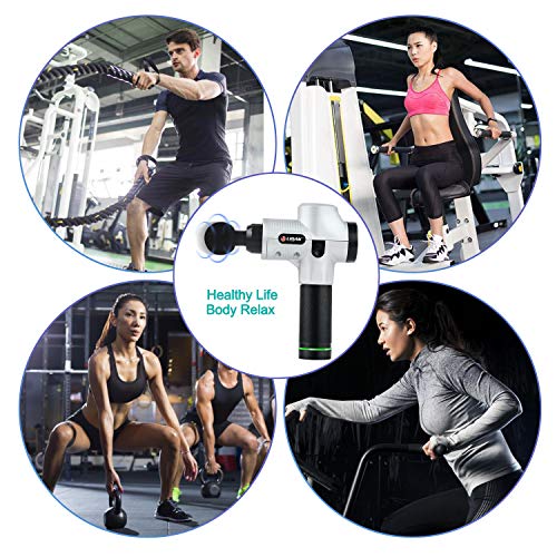 【DEEP TISSUE MUSCLE MASSAGE GUN】A handheld massage gun sends pulses of pressure that penetrate deep into muscle tissue ,this help the user relieve muscle stiffness and soreness, stimulate the circulation of blood and release lactic acid, enhance and expedite muscle recovery ,improve the overall health of the body’s soft tissues . Using the muscle massager , you can prevent fasciitis and relief of aches such as bruises, stiff neck, sore shoulder, backache.