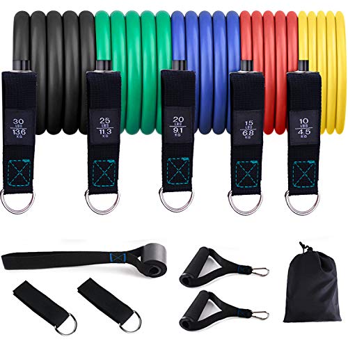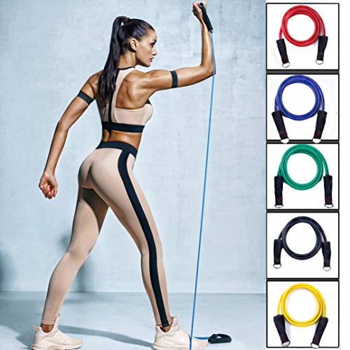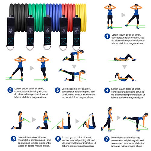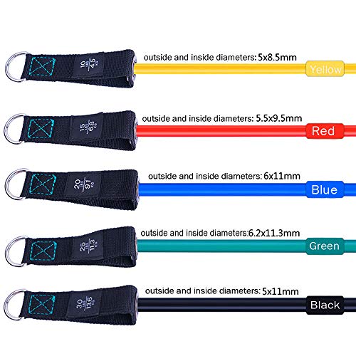 The Ruri’s resistance bands made of 100% Natural Latex with high elasticity and extra thick high-grade silicon,have 5 different resistance level,includes Black(30 lbs), Blue(25 lbs), Red(20 lbs), Green(15 lbs), Yellow(10 lbs).The bands can be used alone or stacked in any combination to achieve your optimal resistance level up to 100 lbs.